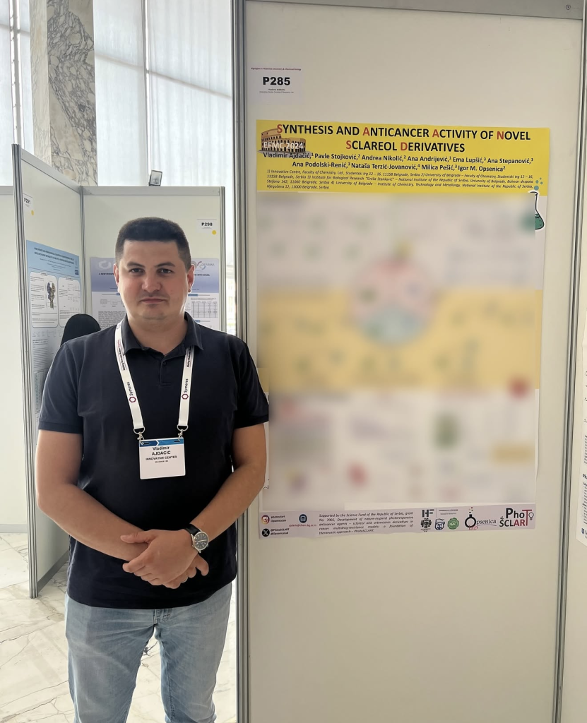 Two of our project team members, Ljiljana Koračak, PhD student, and Dr. Vladimir Ajdačić attended XXVIII EFMC International Symposium on Medicinal Chemistry held in Rome, Italy in September 2024. They had an opportunity to present the latest results on synthesis and anticancer activity of sclareol and artesunate derivatives.